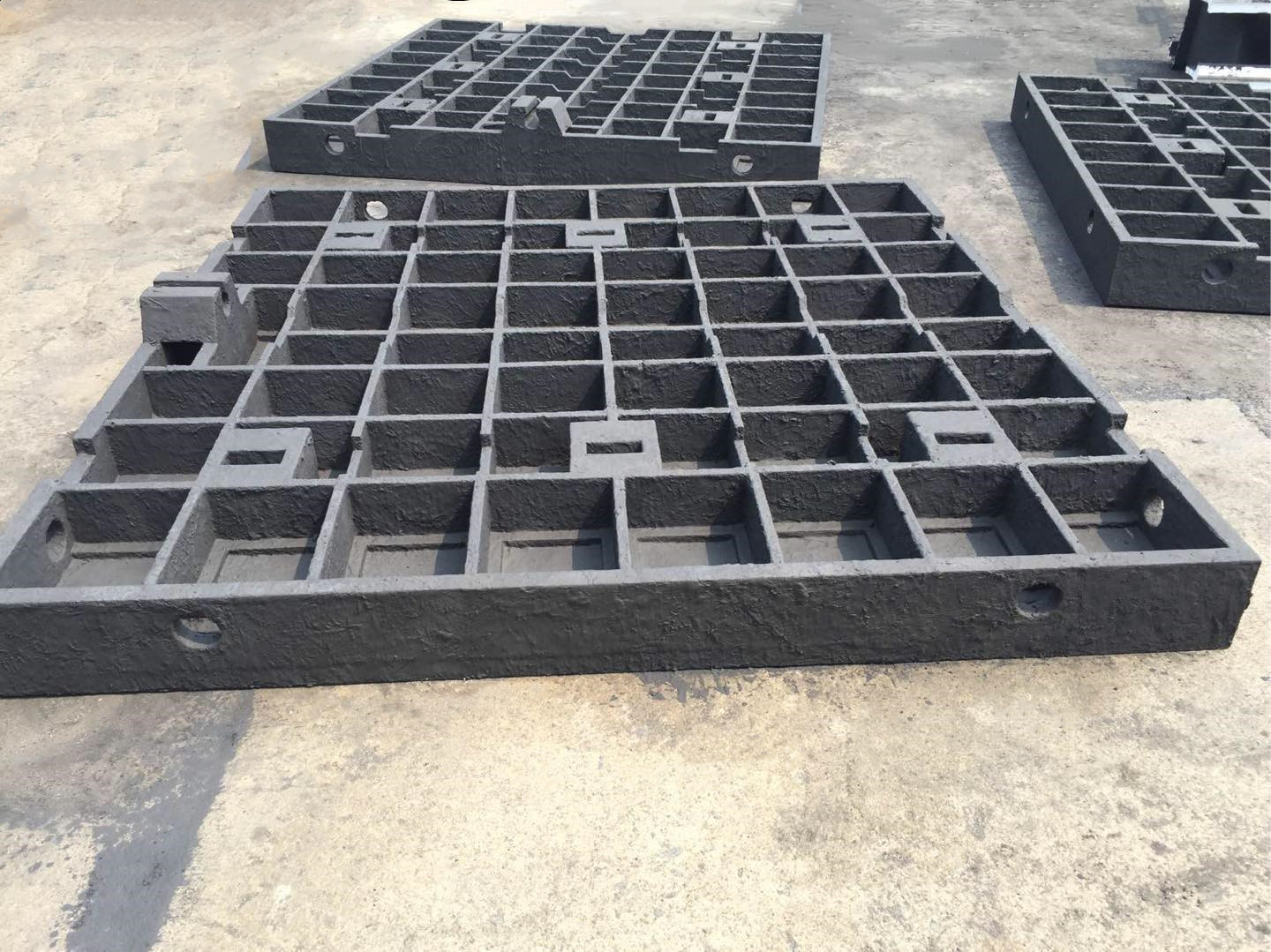 機床鑄件對消失模的要求:涂模(1):涂料要求:采用水基石墨涂料,其波美度為60-70之間,涂刷時在溫室內(nèi),烘干前嚴禁搬動,以防止變形(2)刷涂要求:涂料攪拌均勻,刷涂時嚴謹露白.(3)涂層烘干:涂料供干后要有足夠的強度,在50-60℃的烘干24h。