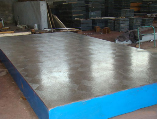 劃線平臺(tái)又叫劃線平板,是用鑄鐵材料做成的平板,采用 細(xì)顆料的灰口鑄鐵或合金鑄鐵制造,是檢驗(yàn)機(jī)械零件平面、平行度、直線度等形位公差的測(cè)量基準(zhǔn),也可用于一般零件及零件的劃線、鉚焊研磨工藝加工及測(cè)量等。常見的加工方法是刮制法,刮制的劃線平板工作面能貯存潤滑油和容納微小灰屑在凹坑中,提高了基準(zhǔn)體現(xiàn)的性與穩(wěn)定性。